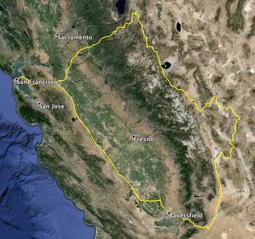 Once I was back on 395, I took the shortest path to Bakersfield, where I stayed at the “America’s Best Value Inn”. Nothing exceptional on that part of the ride, except that it started out warm and sunny, and ended in the freezing cold. This is the last entry for this trip - the next day is just the journey back from Bakersfield to San Francisco. Update: this is a map of the complete route: