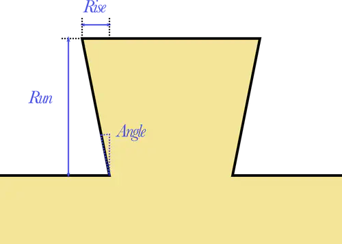 In case you are wondering what “the correct” angle is - there is no consensus whatsoever. Answers vary greatly depending on who you ask, but everything I have ever seen is between 1:4 (about 14 degrees) and 1:8 (about 7 degrees).